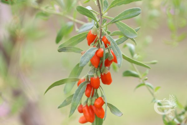 Arbuste autofertile produisant de petites baies sucrées orange-rouge.